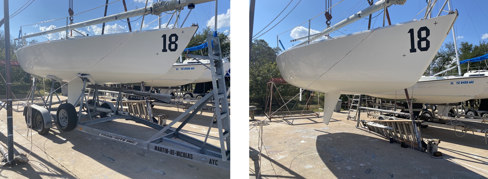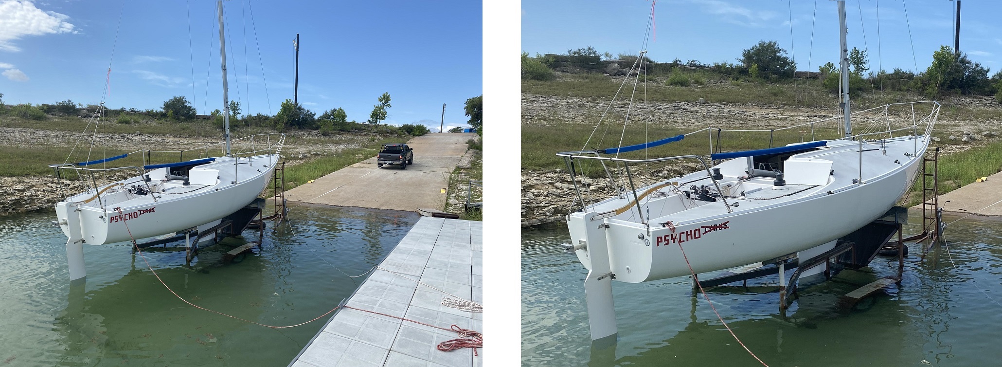 As Lake Travis is a variable level lake, we do not have a fixed boat hoist used to launch boats, and the J/24 fleet at AYC launches boats directly from trailers using the concrete ramps.