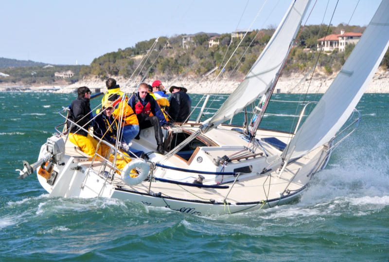 Mission StatementThe mission of the AYC Racing School is to promote the sport of sailboat racing and to raise the level of competition in Central Texas. Austin is already a hotbed for sailboat racing and we want to raise the bar even higher. We want more Austin boats to place high in state, national and even international competitions! This mission will be accomplished by training students in the techniques used to race sailboats and by encouraging students to participate as crew during local AYC races and during out-of-town regattas when a spot in one of the racing boats becomes available. Students who complete the Racing School curriculum will have the knowledge and confidence needed to buy a sailboat and start racing.The AYC Racing SchoolThe AYC Racing School is organized by volunteers at the Austin Yacht Club. AYC is a private sailing club whose primary purpose is to promote sailboat racing and related social activities on Lake Travis. We are passionate about racing sailboats and we want you to catch the bug too! We encourage you to explore our website, see how the racing school is organized, look at the class schedule and the courses offered, and register for a class. How much does it cost?![]() J/29 "Godzilla" racing on Lake Travis (image courtesy of Bruce McDonald) The best things in life are free, and so is the AYC Racing School :-) Your instructors are volunteer sailors from the Austin Yacht Club who will be participating in a club-sponsored race later in the day. We get to the club a couple of hours earlier than we normally would in order to teach you how to sail. It's a win-win situation :-) We get to sail more (instead of mowing the lawn), and you get to learn how to sail. We are hoping that once you catch the bug you'll join us on the race course, and we'll teach you everything you need to know in order to get there. If you have any questions, please email us at racingschool@j24fleet21.com. We hope to see you on the race course!