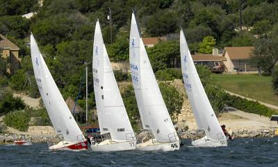 What should the email say?Please include your full name, email address and the date of the class you are planning to attend. If you are a new student, please tell us how you found out about us, and please spell your name the way you would like it spelled during class. For example, sometimes "Joseph" likes to be called "Joe" and when "Katharine Hepburn" attended one of our classes she hated it when people spelled her name "Katherine", haha! ;-) You can register a friend as well, but you must include their full name and email address as well. We use email to communicate the status of class and to confirm how many spots are available so it is important for everybody to check their email frequently on the days leading up to the class. You can register for more than one class in advance if you want, but please remember to register for each class you plan to attend in order to help us plan the number of sailboats and instructors needed. For new students, please let us know how you heard about us and please include your level of experience so we can plan ahead (remember beginners are welcome :-)OK, I sent an email, what next?![]() Fancy "Yes" and "No" buttons on typical emails sent via our Racing School email servers. Once you send us an email, we will reply with a confirmation. The week before class we will finalize how many volunteer instructors we have for that week and how many spots are available for students. Once we finalize the count of volunteer instructors we will send an email to all students who have registered confirming class and confirming whether we have a spot available for them or whether they are on the waiting list. We do most of our communications via email, so it is very important that everybody check their email frequently on the days leading up to the class and reply so that we know you are still able to participate. In particular, it is important that everybody click on the appropriate Yes or No button on the confirmation email to indicate whether they are still able to attend or not. Clicking the appropriate button will add you to the right list automatically, and it will make our life a lot simpler when we are trying to match students to available sailboats :-) If your confirmation email does not contain the Yes and No buttons, or if they are not nicely formatted as shown above, then please let us know as soon as possible. Where should I go?![]() Four sailboats racing upwind on Lake Travis (image courtesy of Bruce McDonald) Classes are held at the Austin Yacht Club. The AYC Contact Us page has the address. If the front gate is closed when you arrive, please wait and an instructor will open the gate for you. When?Plan on getting to the club by the Class Start time specified on the schedule. Plan on being on the water between 2 and 2-1/2 hours for a regular class.Important: New students please arrive one hour prior to the start time shown on the schedule in order to go through orientation as described in the What to expect section. We typically have the orientation class if we have enough new students who have never attended before. When you register for a class, your confirmation email will have the time you should arrive at the club depending on whether you are a new student or a returning student. Afternoon RaceIf you would like to participate in one of the AYC races after class, then plan on spending the rest of the day enjoying beautiful Lake Travis! Please tell your instructor and we will try to find a boat that needs extra crew for the race. We can't guarantee that we will find you a spot but most skippers at AYC are happy to take newcomers on board. The afternoon race starts at 1:30 pm and ends around 4:30 pm. Typically everybody congregates at the clubhouse after the race and the AYC Social Committee provides a meal for around $8 dollars. If you attend the afternoon race, and if you would like to stay for the meal, please bring some cash with you.What to bring? What to wear?Here are some suggestions for personal items you may want to bring: